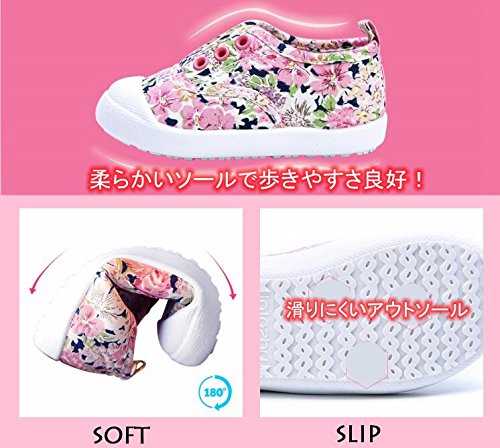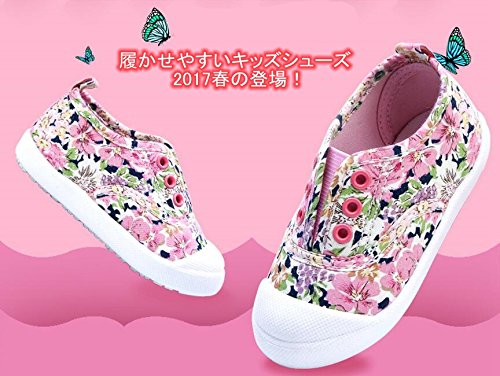 子供靴 女の子 男の子 スリッポン ガールズスリッポン キッズ シューズ 男の子 幅広 13/14/15/16/17CM センチ/幼稚園 入園 入学 通園 幼児 運動靴 スポーツ 子供靴 ベビー ベビーシューズ 通学靴 上履き ガールズシューズ 花柄 ピンク (13cm, ピンク)