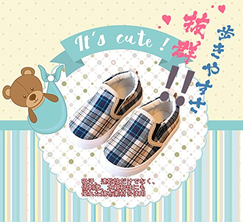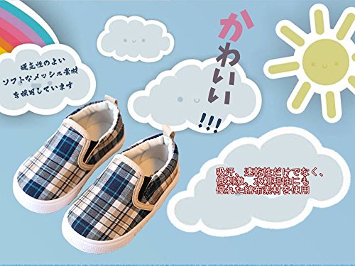 子供靴 男の子 スリッポン ガールズスリッポン キッズ シューズ 男の子 女の子 幅広 13/14/15/16/17CM センチ/幼稚園 入園 入学 通園 幼児 運動靴 スポーツ 子供靴 ベビー ベビーシューズ 通学靴 上履き ガールズシューズ チェック柄 (13cm, ブルー)