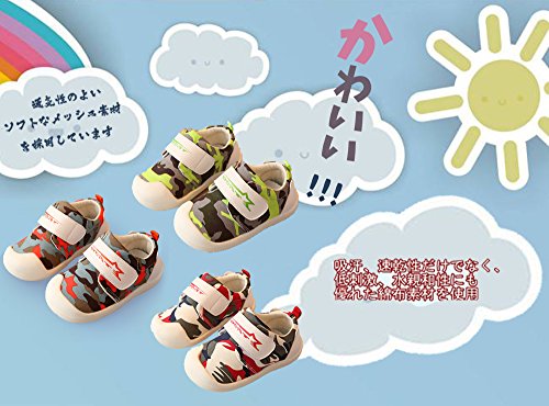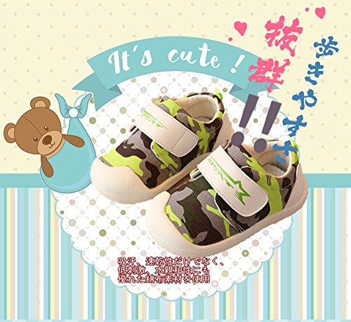 子供靴 スニーカー 男の子 女の子 ガールズスリッポン キッズ シューズ 男の子 幅広 13/14/15/16CM センチ/幼稚園 入園 入学 通園 通学靴 運動靴 スポーツ 子供靴 ベビー 緑 ベビーシューズ スニーカー 迷彩柄 クッション性 (14cm, グリーン)