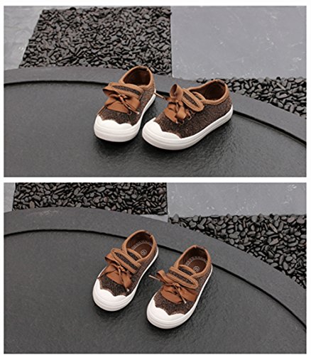 子供靴 スニーカー 女の子 男の子 ガールズスリッポン キッズ シューズ 女の子 13/14/15/16/17CM センチ/幼稚園 入園 入学 通園 通学靴 運動靴 スポーツ 子供靴 スニーカー ベビー ベビーシューズ キャンバス ガールズシューズ 可愛いリボン (24(15.0cm), ブラウン)
