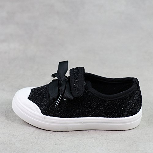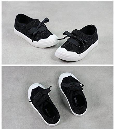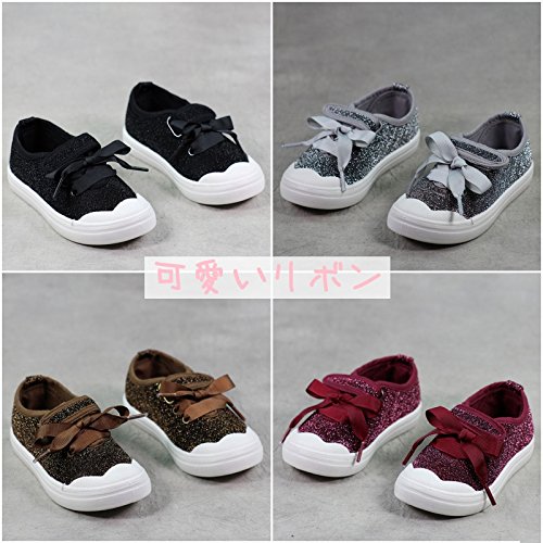 子供靴 スニーカー 女の子 男の子 ガールズスリッポン キッズ シューズ 女の子 13/14/15/16/17CM センチ/幼稚園 入園 入学 通園 通学靴 運動靴 スポーツ 子供靴 スニーカー ベビー ベビーシューズ キャンバス ガールズシューズ 可愛いリボン (22(14.0cm), ブラック)