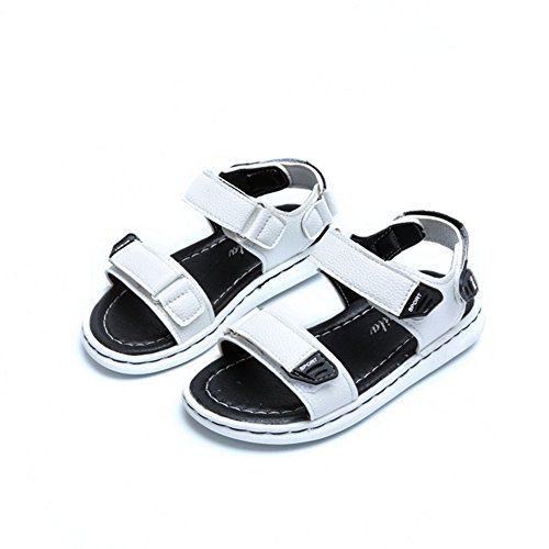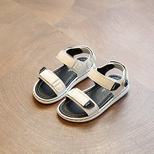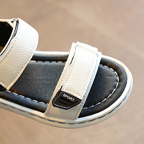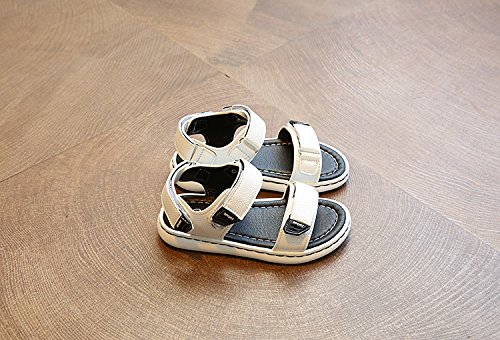 キッズサンダル 男の子 サンダル キッズ おしゃれ 履きやすい 滑り止め ビーチサンダル 軽量 柔らかい レザー 夏 ビーチ 子供靴 着脱 らくらく キッズシューズ 通園 通学 靴 こども かっこいい 黒 白 16 センチ (18cm, ホワイト)