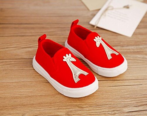 子供靴 女の子 男の子 スリッポン ガールズスリッポン キッズ シューズ 履きやすい 13/14/15CM センチ/幼稚園 入園 入学 通園 幼児 子供靴 ベビー かわいい ベビーシューズ 通学靴 キッズシューズ 上履き キャラクター 黑 白 (15cm, レッド)