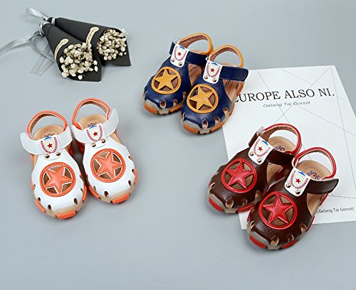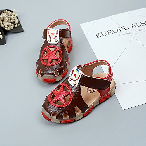 キッズサンダル 男の子 サンダル キッズ 履きやすい 滑り止め 13/14/15/16/17cm センチ マジックテープ ビーチサンダル 軽量 柔らかい 通気性 夏 ビーチ 子供靴 着脱 らくらく キッズシューズ 通園 通学 靴 こども スポーツ 星柄 (13.5cm, ブラウン)