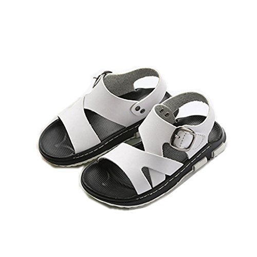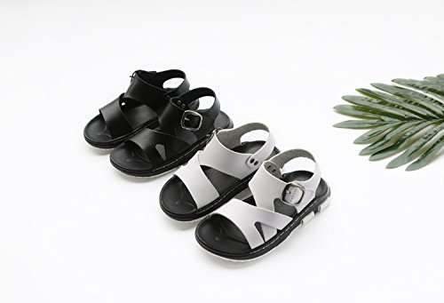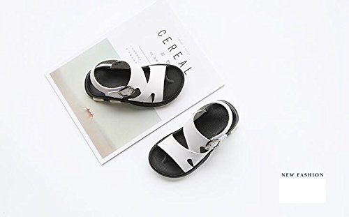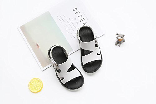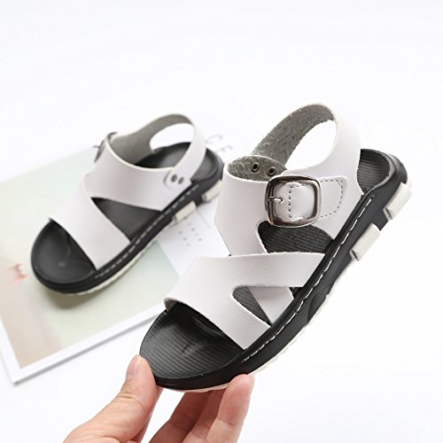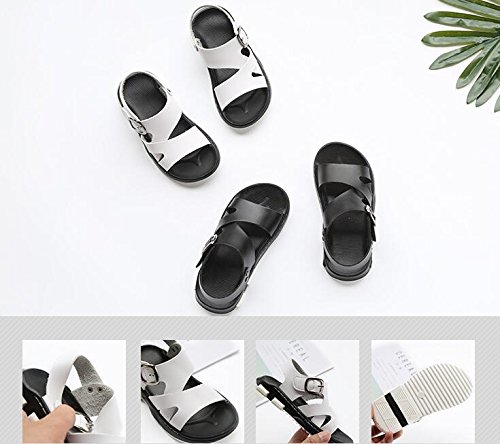 キッズサンダル 男の子 サンダル キッズ おしゃれ 履きやすい 滑り止め ビーチサンダル 柔らかい レザー 夏 ビーチ 子供靴 着脱 らくらく キッズシューズ 通園 通学 靴 こども かっこいい 黒 白 16 センチ (16.5cm, ホワイト)