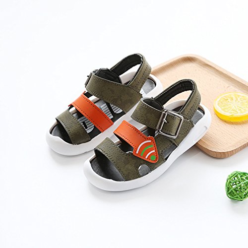 キッズサンダル 男の子 サンダル キッズ 履きやすい 滑り止め 14/15/16cm センチ マジックテープ ビーチサンダル 軽量 柔らかい 通気性 夏 ビーチ 子供靴 着脱 らくらく キッズシューズ 通園 通学 靴 こども スポーツ かっこいい (14cm, カーキ)