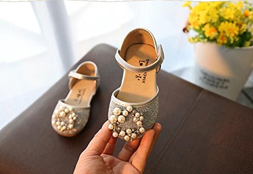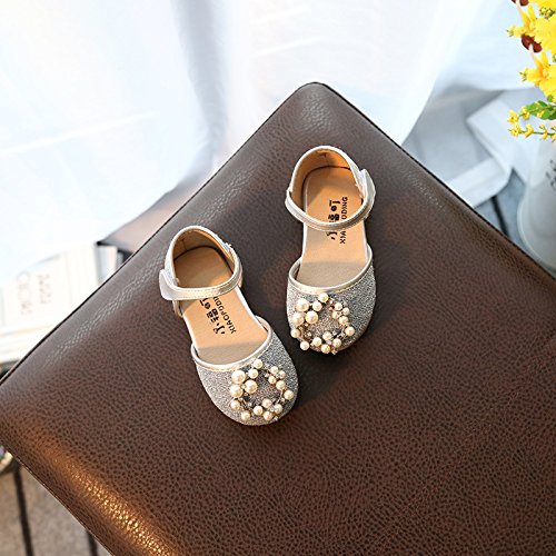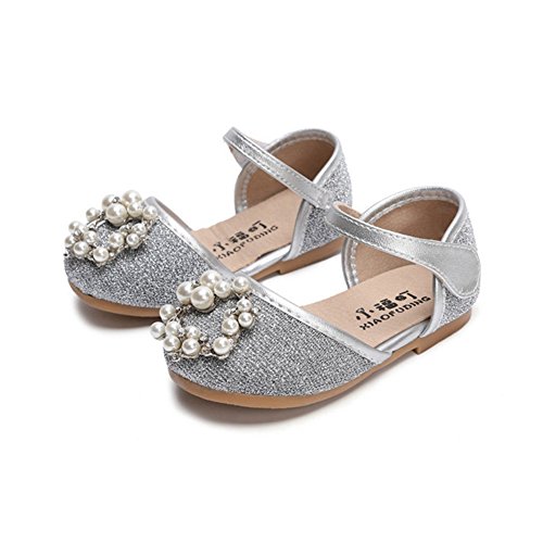 キッズ フォーマルシューズ 女の子 履きやすい 子供 靴 入園式 卒業式 卒園式 結婚式 入学式 発表会 ガールズスリッポン こども靴 春 夏 かわいい ベビーシューズ 通学 ガールズシューズ 柔らかい 13/14/15cm センチ 真珠付き (15.5cm, シルバー)