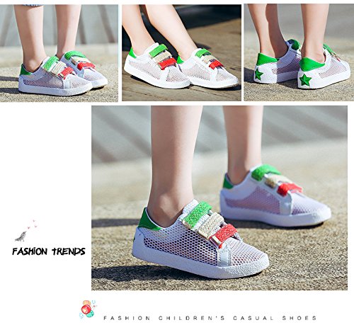 子供靴 スニーカー 男の子 女の子 ガールズスリッポン キッズ シューズ メッシュ 運動会 運動靴 スポーツ 水陸両用 子供靴 キッズシューズ スリッポン 歩きやすい 通気性 速乾性 16/17/18/19cm センチ 夏 白 (16cm, グリーン)