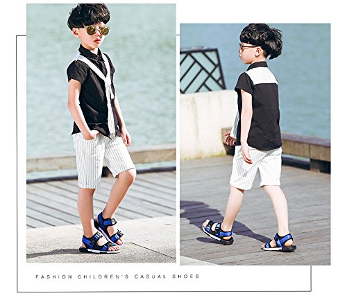 キッズサンダル 男の子 サンダル キッズ おしゃれ 履きやすい 滑り止め ビーチサンダル 柔らかい レザー 夏 ビーチ 子供靴 着脱 らくらく キッズシューズ 通園 通学 かっこいい 黒 迷彩柄 16 センチ 靴 こども スポーツ (17cm, ブルー)