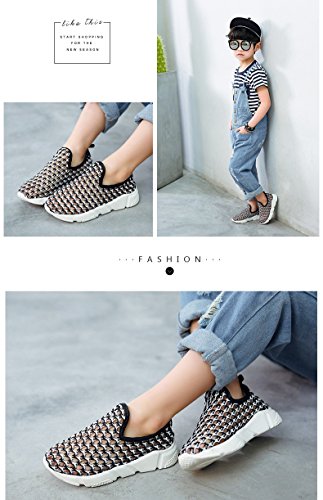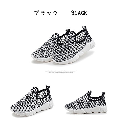 子供靴 スニーカー 男の子 女の子 ガールズスリッポン キッズ シューズ おしゃれ メッシュ 運動会 運動靴 スポーツ用 水陸両用 子供 靴 22 23 キッズシューズ スリッポン 歩きやすい 通気性 速乾性 14/15/16/17/18cm センチ 夏 黑 赤 (21cm, ブラック)