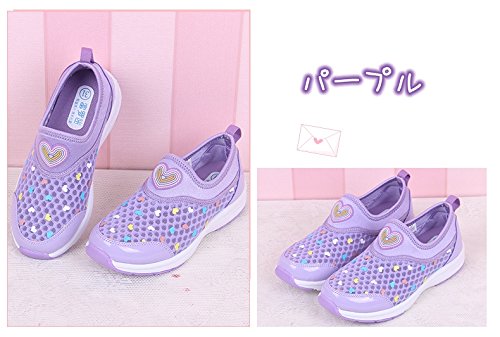 子供靴 スニーカー 女の子 ガールズスリッポン キッズ シューズ 女の子 メッシュ 運動会 運動靴 スポーツ用 子供靴 キッズシューズ スリッポン 歩きやすい 通気性 速乾性 夏 16/17/18/19/20cm センチ (17cm, パープル)