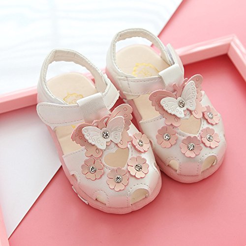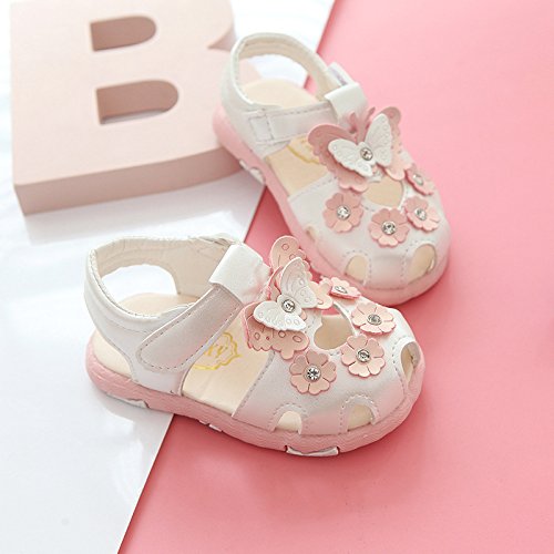 子供靴 女の子 サンダル キッズ 履きやすい マジックテープ ビーチサンダル 軽量 耐磨 夏 ビーチ ベビーシューズ 通園 こども靴 柔らかい 靴 ベビー かわいい お花 付き 12/13/14/15cm センチ (15cm, ホワイト)
