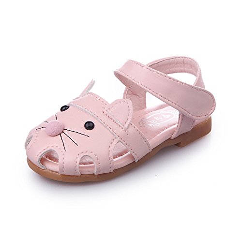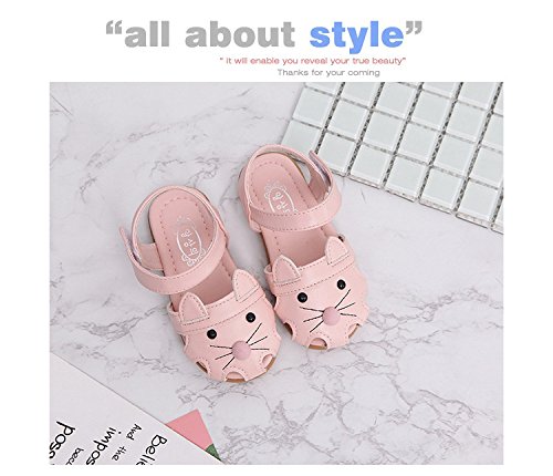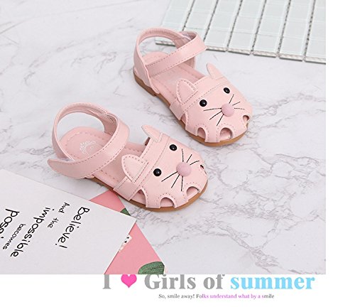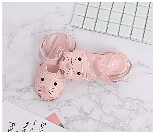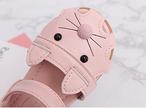 子供靴 女の子 サンダル キッズ 履きやすい マジックテープ ビーチサンダル 軽量 耐磨 夏 ビーチ ベビーシューズ 通園 こども靴 柔らかい 靴 ベビー かわいい 13/14/15cm センチ ネコ ミミ付き (15cm, ピンク)