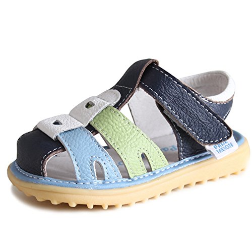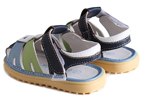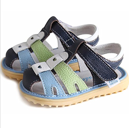 子供靴 女の子 男の子 サンダル キッズ 履きやすい マジックテープ ビーチサンダル 軽量 耐磨 夏 ビーチ ベビーシューズ 通園 こども靴 柔らかい レザー 靴 ベビー かわいい 13/14/15cm センチ (14cm, ブルー・グリーン)