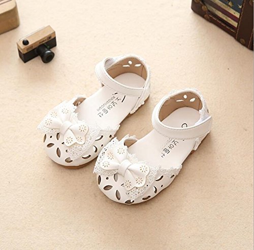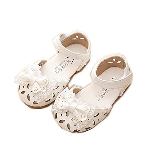 子供靴 女の子 サンダル キッズ 履きやすい マジックテープ ビーチサンダル 軽量 耐磨 夏 ビーチ ベビーシューズ 通園 こども靴 柔らかい レザー 靴 ベビー かわいい 13/14/15cm センチ リボン (13.5cm, ホワイト)