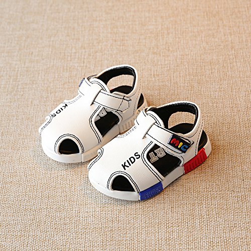 キッズサンダル 男の子 サンダル キッズ 履きやすい 滑り止め 13/14/15/16cm センチ マジックテープ ビーチサンダル 軽量 柔らかい キッズシューズ ビーチ 子供靴 着脱 らくらく ベビーシューズ 通園 靴 こども (16cm, ホワイト)