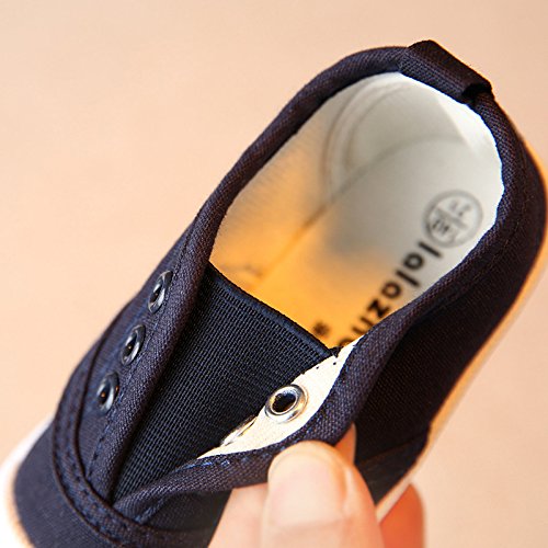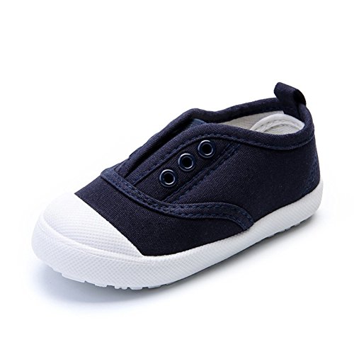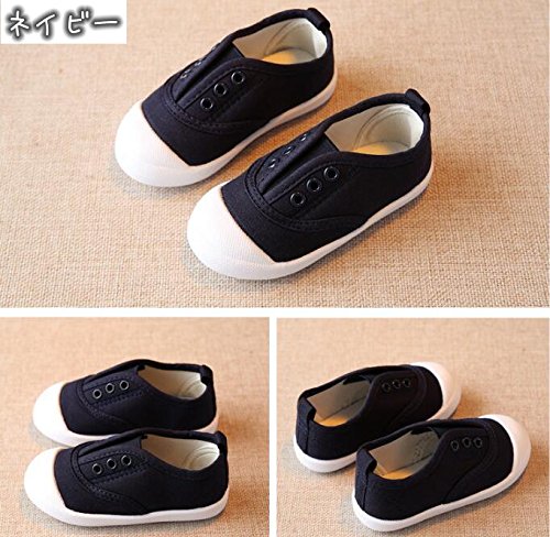 子供靴 スリッポン 女の子 スニーカー 男の子 ガールズスリッポン キッズ シューズ 12/13/14/15/16/17cm センチ 通学 運動靴 こども靴 ベビー ベビーシューズ 滑り止め 柔らかい ファーストシューズ キャンバス 夏秋 上履き 白 (17cm, ネイビー)