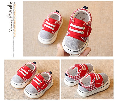 子供靴 スニーカー 男の子 ガールズスリッポン キッズ シューズ 女の子 12/13/14/15/16CM センチ/幼稚園 入園 入学 通園 幼児 ファーストシューズ 子供靴 ベビー かわいい ベビーシューズ キャンバス クッション性 マジックテープ (15cm, レッド)