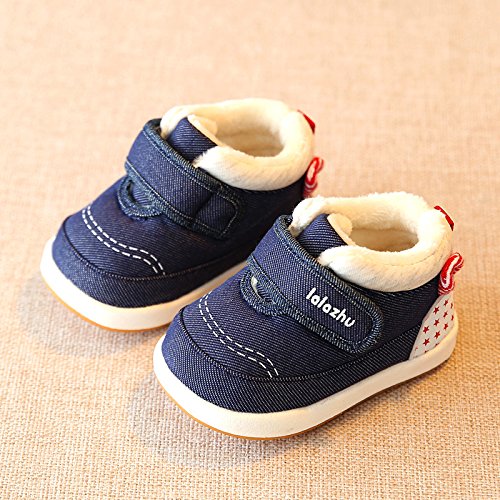 子供靴 スニーカー 男の子 ガールズスリッポン キッズ シューズ 女の子 12/13/14/15CM センチ 入園 通園 幼児 ファーストシューズ 子供靴 ベビー かわいい ベビーシューズ クッション性 マジックテープ ボア付き 暖かい (13cm, ネイビー)