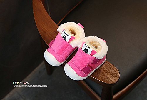 子供靴 スニーカー 男の子 ガールズスリッポン キッズ シューズ 女の子 12/13/14CM センチ 入園 通園 幼児 ファーストシューズ 子供靴 ベビー かわいい ベビーシューズ クッション性 マジックテープ ボア付き 暖かい (12cm, ローズ)