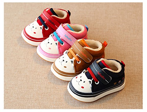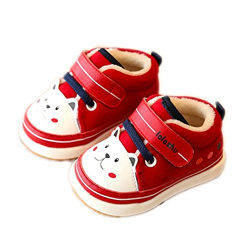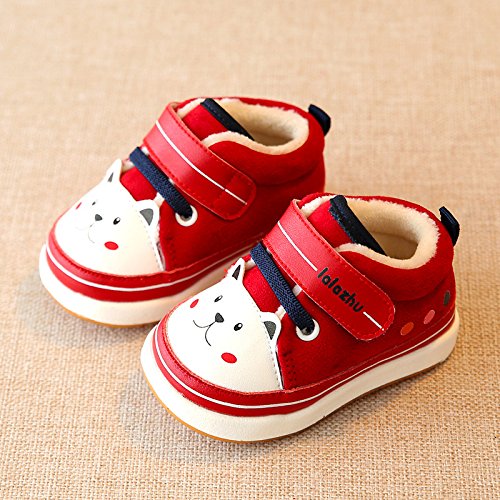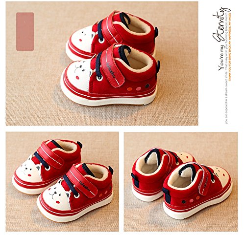 子供靴 スニーカー 男の子 ガールズスリッポン キッズ シューズ 女の子 12/13/14/15CM センチ 入園 通園 幼児 ファーストシューズ 子供靴 ベビー かわいい ベビーシューズ クッション性 マジックテープ ボア付き 暖かい (12cm, レッド)