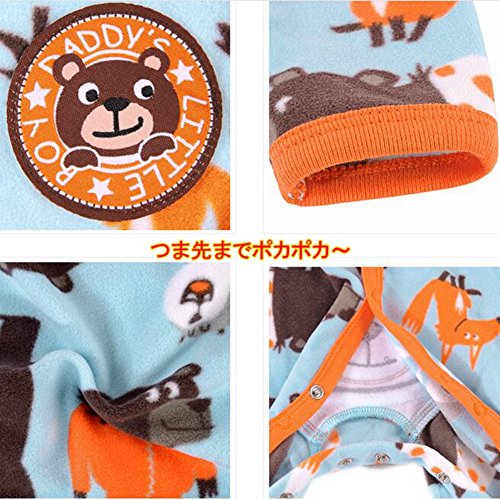 ☆ふわふわフリース地の足つきロンパースは着心地も快適です。保温効果も期待できるお役立ちアイテムです