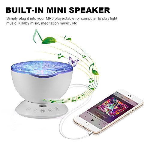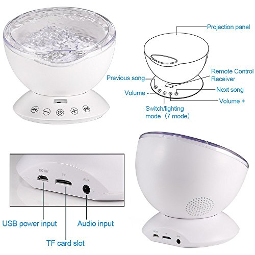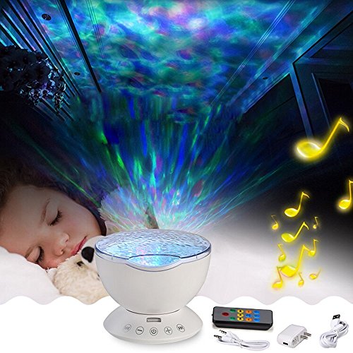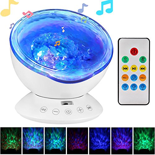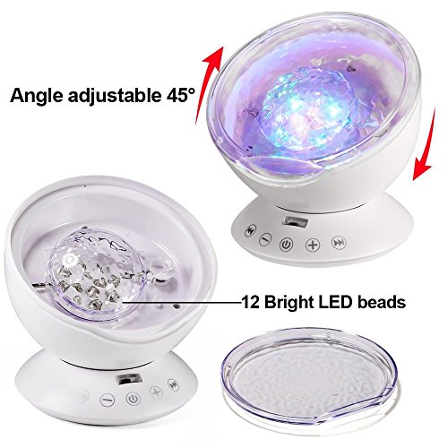 - [アップグレード版の海の波の常夜灯]: 12 LEDビーズはミュージックライトリモートコントローラーとタッチsenorキー、自由にランプのオン/オフ、ライトの変更モードでは、ボリュームを調整しています。これらの機能は、オフに自動的に設定タイマーを使用します。