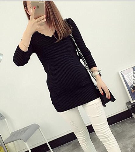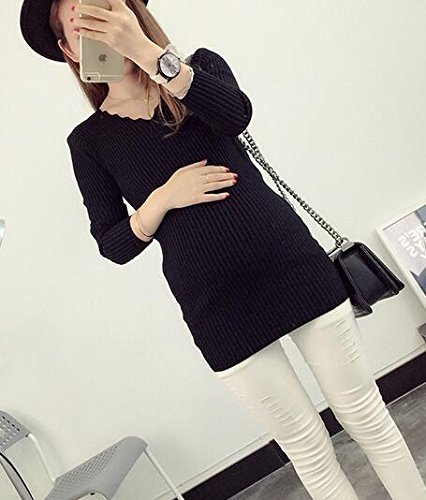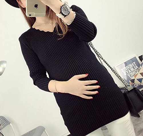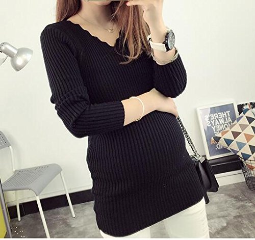 (TPGROWIN) マタニティ ウェア ニット セーター Vネック 妊婦服 防寒 タイト カジュアル あったか 産前 産後 全5色 (Free, ブラック)