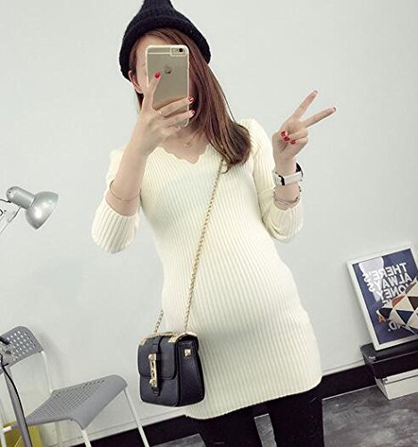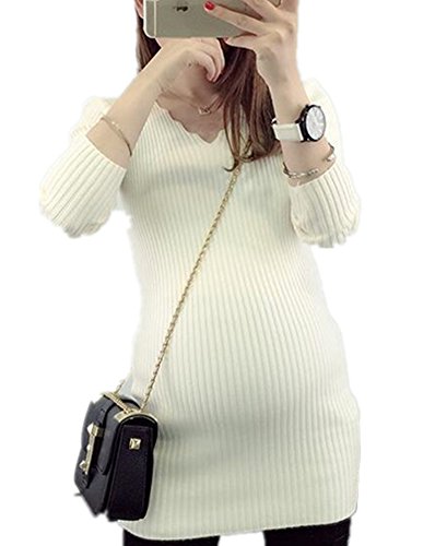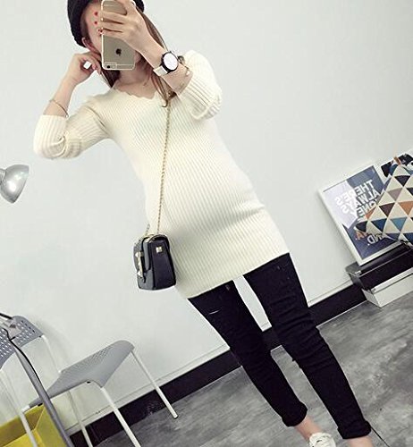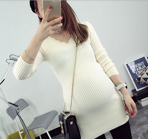 (TPGROWIN) マタニティ ウェア ニット セーター Vネック 妊婦服 防寒 タイト カジュアル あったか 産前 産後 全5色 (Free, ベージュ)