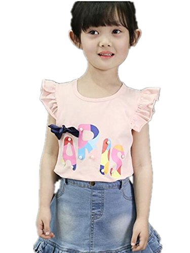 【TPGROWIN】 子供服 ベビー リボン フリル プリント シャツ ブラウス キッズ 女の子 かわいい 入園式 入学式 綿 春 夏 (100, ピンク)