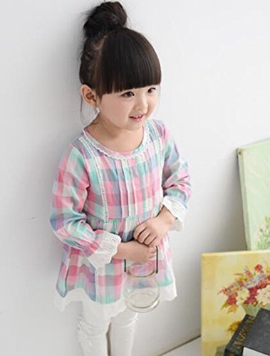 【TPGROWIN】 子供服 ワンピース ガールズ レース フリル チェック柄 配色 ベビー キッズ 女の子 パーティー 入園式 卒園式 春 夏 (140, ピンク)