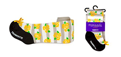 LA発のブランドTRUMPETTE(トランペット)のベビー用タイツ。 カラフルな色と遊び心のあるデザインが人気で、 可愛くてセンスの良いギフトとして、 セレブの間で話題のベビーブランドです。 まるで靴を履いているように見えるだまし絵のタイツです。 グレーとホワイトのボーダー柄に、 イエローのローズの組み合わせがキュート。 サイズは2タイプあり、6~18カ月ごろのベビーにオススメの 伸縮性のある素材です。 サイズ: (6~12カ月)総丈40cm、ウエスト36cm~50cm程度で伸縮 (12~18カ月)総丈50cm、ウエスト38cm~52cm程度で伸縮 素材:コットン70%、ナイロン21%、ポリエステル7%、スパンデックス2% 商品名:TRUMPETTE MARISSA'S TIGHTS