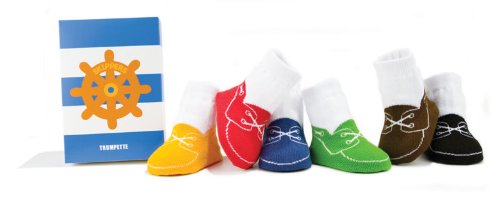 セレブママに大人気のTRUMPETTE(トランペット)から、男の子向けでマリンデッキシューズをイメージしたソックス6足組の登場☆ 赤ちゃんのために作られたLAセレブに大人気のベビーソックスです。 まだまだ外で歩きまわれない赤ちゃんに、まるで靴を履いているようなかわいい靴下を履かせてあげて下さい☆ 足の裏側には『TRUMPETTE』のロゴが2つ付けられており、ゴム素材だから滑り止めにもなる優れもの! 足首部分もリブ素材でしっかり固定されるから、動き回る赤ちゃんの足をしっかり守ってくれます。 かわいいイラストのBOX付きだからお友達へのプレゼントや出産祝いの贈り物にもピッタリです。