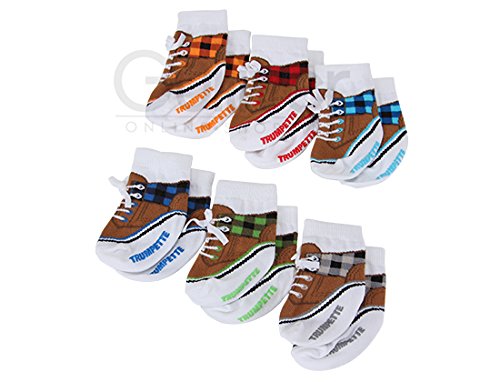 TRUMPETTEはデザイナーのジョン・スティーブンソンにより設立されたベビー用靴下のブランドです。 カラフルで遊び心いっぱいのアイテムたちはLAの超人気セレクトショップで取り扱われ、今もなおLAセレブの間で大ブレイク中です。 可愛らしいBOX付きのベビーソックス6足セットです。 すべて違うカラーで構成されていて、デザインもとてもオシャレですので出産祝いやプレゼントにぴったりです♪ ※海外正規品を直輸入し販売しております。