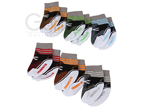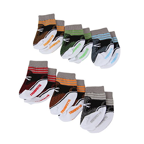 TRUMPETTEはデザイナーのジョン・スティーブンソンにより設立されたベビー用靴下のブランドです。 カラフルで遊び心いっぱいのアイテムたちはLAの超人気セレクトショップで取り扱われ、今もなおLAセレブの間で大ブレイク中です。 可愛らしいBOX付きのベビーソックス6足セットです。 すべて違うカラーで構成されていて、デザインもとてもオシャレですので出産祝いやプレゼントにぴったりです♪ ※海外正規品を直輸入し販売しております。