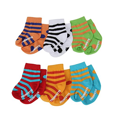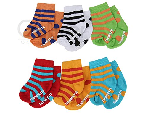 TRUMPETTEはデザイナーのジョン・スティーブンソンにより設立されたベビー用靴下のブランドです。 カラフルで遊び心いっぱいのアイテムたちはLAの超人気セレクトショップで取り扱われ、今もなおLAセレブの間で大ブレイク中です。 可愛らしいBOX付きのベビーソックス6足セットです。 すべて違うカラーで構成されていて、デザインもとてもオシャレですので出産祝いやプレゼントにぴったりです♪ ※海外正規品を直輸入し販売しております。