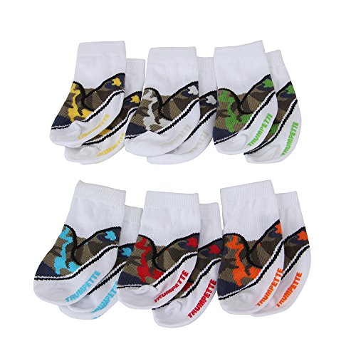 TRUMPETTEはデザイナーのジョン・スティーブンソンにより設立されたベビー用靴下のブランドです。 カラフルで遊び心いっぱいのアイテムたちはLAの超人気セレクトショップで取り扱われ、今もなおLAセレブの間で大ブレイク中です。 可愛らしいBOX付きのベビーソックス6足セットです。 すべて違うカラーで構成されていて、デザインもとてもオシャレですので出産祝いやプレゼントにぴったりです♪ ※海外正規品を直輸入し販売しております。