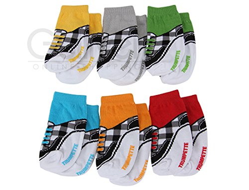 TRUMPETTEはデザイナーのジョン・スティーブンソンにより設立されたベビー用靴下のブランドです。 カラフルで遊び心いっぱいのアイテムたちはLAの超人気セレクトショップで取り扱われ、今もなおLAセレブの間で大ブレイク中です。 可愛らしいBOX付きのベビーソックス6足セットです。 すべて違うカラーで構成されていて、デザインもとてもオシャレですので出産祝いやプレゼントにぴったりです♪ ※海外正規品を直輸入し販売しております。 ※国内業者による検針済みですので、安心してお使いいただけます。