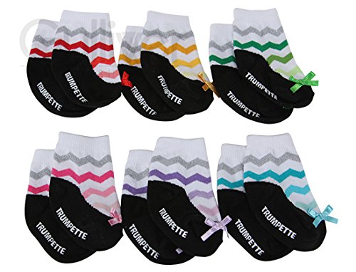 TRUMPETTEはデザイナーのジョン・スティーブンソンにより設立されたベビー用靴下のブランドです。 カラフルで遊び心いっぱいのアイテムたちはLAの超人気セレクトショップで取り扱われ、今もなおLAセレブの間で大ブレイク中です。 可愛らしいBOX付きのベビーソックス6足セットです。 すべて違うカラーで構成されていて、デザインもとてもオシャレですので出産祝いやプレゼントにぴったりです♪ ※海外正規品を直輸入し販売しております。 ※国内業者による検針済みですので、安心してお使いいただけます。