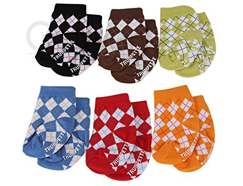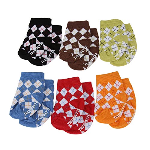 TRUMPETTEはデザイナーのジョン・スティーブンソンにより設立されたベビー用靴下のブランドです。 カラフルで遊び心いっぱいのアイテムたちはLAの超人気セレクトショップで取り扱われ、今もなおLAセレブの間で大ブレイク中です。 可愛らしいBOX付きのベビーソックス6足セットです。 すべて違うカラーで構成されていて、デザインもとてもオシャレですので出産祝いやプレゼントにぴったりです♪ ※海外正規品を直輸入し販売しております。 ※国内業者による検針済みですので、安心してお使いいただけます。