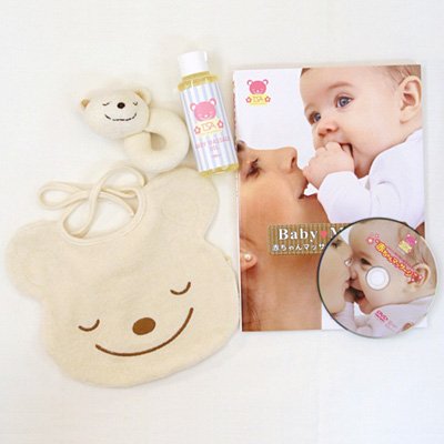 - 赤ちゃんの成長を促し、親子の絆を深める「赤ちゃんマッサージ」がすぐに始められる「テキスト・DVD・オイル」をセットにした出産祝い用ギフト