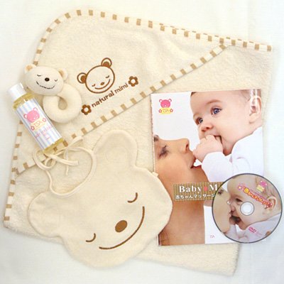 - 赤ちゃんの成長を促し、親子の絆を深める「赤ちゃんマッサージ」がすぐに始められる「テキスト・DVD・オイル」をセットにした出産祝い用ギフト