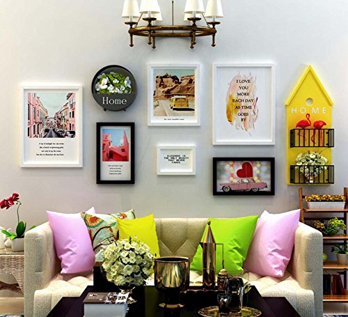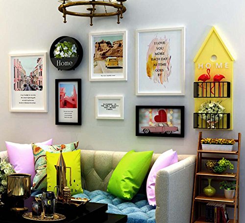 6絵画壁の壁の装飾壁の組み合わせ、テレビの壁壁掛けの絵画の組み合わせ装飾的な絵画、独創的な壁掛けの木製のフレーム、ラック+アイアンフラワーバスケット(装飾なし)