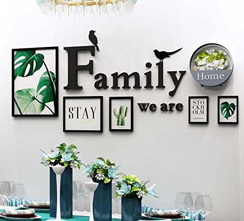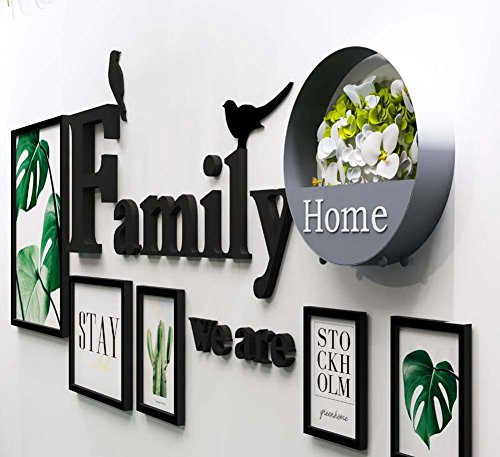 5壁の壁の装飾壁画の壁の壁の壁の壁の壁の飾り付け装飾的な絵画、独創的な壁ハンギングソリッドウッドフレーム、アクリルの3D手紙壁ステッカー+アイアンフラワーバスケット(装飾なし)