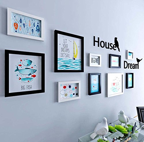 10壁の装飾の壁の装飾壁の組み合わせ、テレビの背景壁掛けの絵画の組合せ装飾的な絵画、独創的な壁掛けのソリッドウッドフレーム、アクリルの3D文字の壁のステッカー (色 : ブラック)