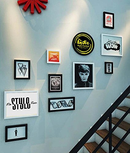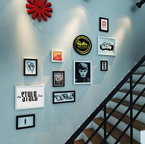 11写真フレーム階段壁装飾壁画の組み合わせ、テレビの背景壁掛けの絵画の組み合わせ装飾的な絵画、創造的な壁掛けの固体木枠、オーディオビデオクラシック (色 : A)