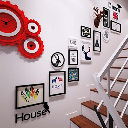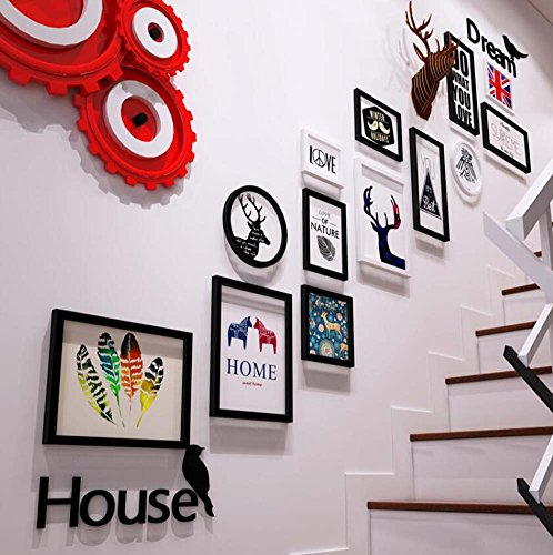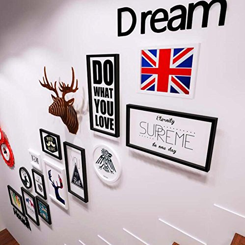 13絵画の階段の壁の装飾壁の組み合わせ、テレビの背景壁掛けの絵画の組み合わせ装飾的な絵画、クリエイティブな壁掛けのソリッドウッドフレーム、アクリルの3D文字の壁のステッカー+スプライシングの鹿ヘッド