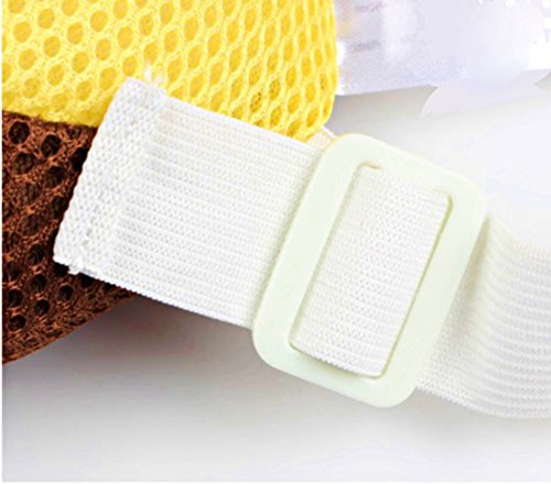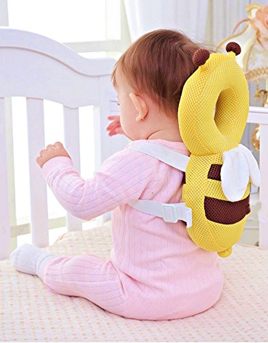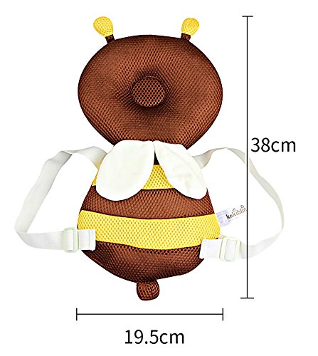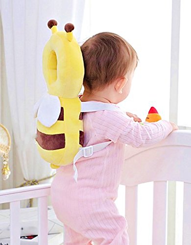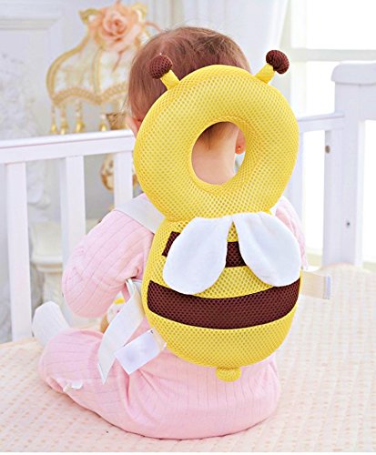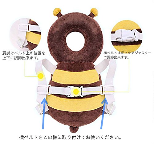 - まだまだ不安定な歩き方の赤ちゃんが後方に倒れてしまったら床に頭を打ち付けて大変なことに、そういう時にこのクッションで衝撃を和らげ頭部を守ります。ヘルメットだと嫌がる赤ちゃんにもみつばちモチーフのこのリュックなら興味津々、軽量で背負うタイプなので邪魔になりません。
