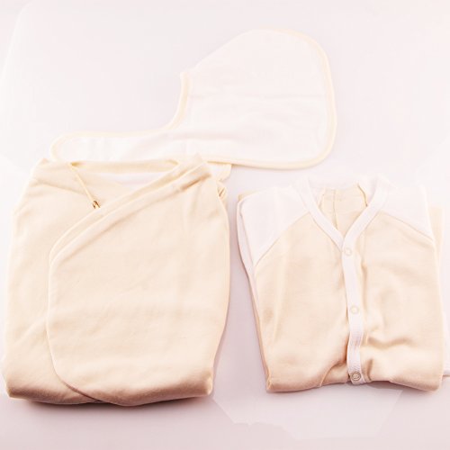 【TYGJ】オーガニックコットン ベビー服 新生児 豪華 肌着セット コンビ肌着 ( 赤ちゃんのラッパー 1枚&ロンパースセット1枚&よだれかけ 1枚) 子供服 有機栽培綿100% 出産祝い ギフトセット