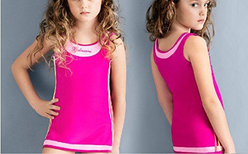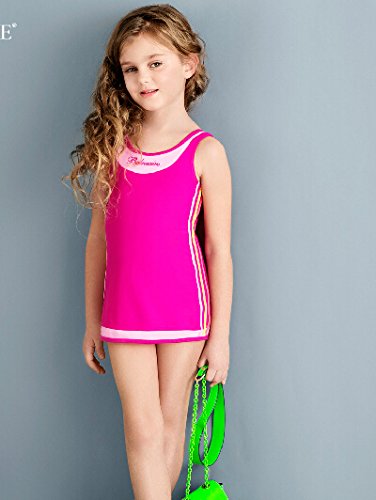 2015新女児水着 子供 水着 水着 キッズ 女の子 ワンピース みずぎ ミズギ 子供水着 水着 スクール チャイルド スカート水着 ファッション素敵な女の子シャムまっすぐ ビッグ処女水着 (11-12(140cm-150cm), ローズレッド)